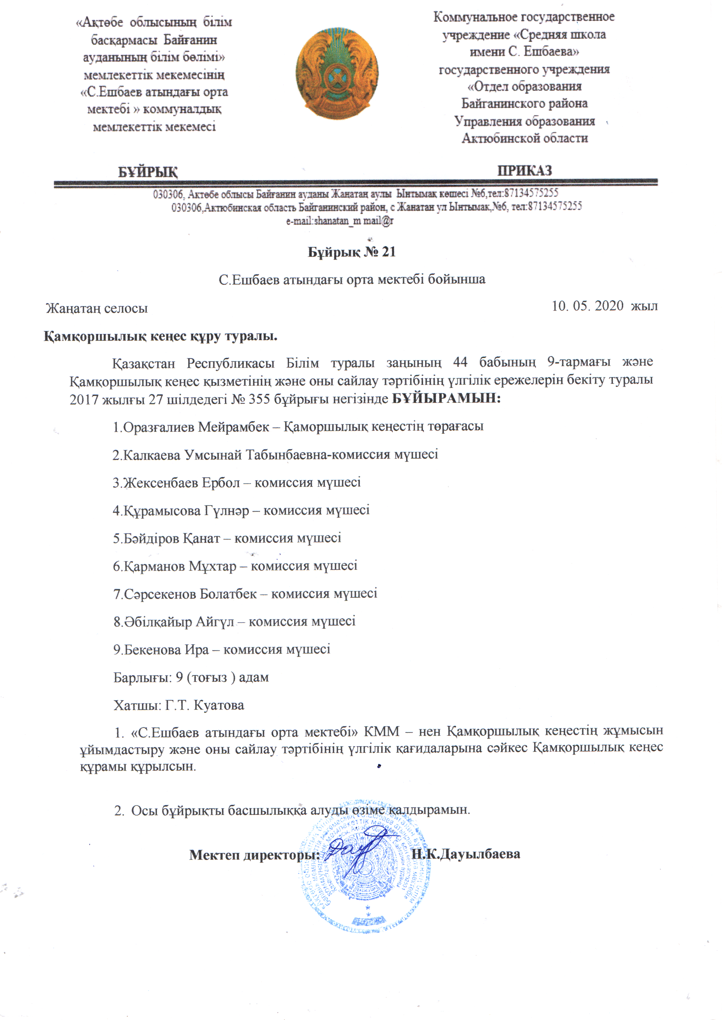 "Ақтөбе облысынң білім басқармасы Байғанин ауданының білім бөлімі" мемлекеттік мекемесінің "С.Ешбаев атындағы орта мектебі" КММ